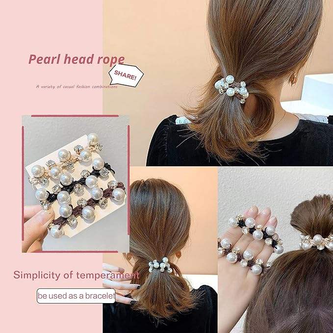 Rhinestone and Pearl Hair Ties for Women and Girls, Elastic Hair Scrunchies, Stretchy Hair Bands for Ponytail, Bun