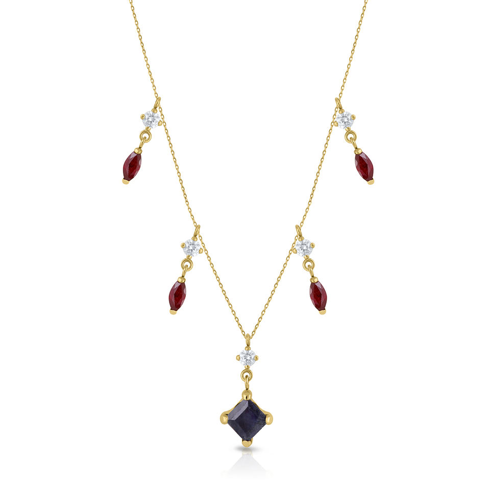 Rhodium Plated Gold Necklace Natural Sapphire Ruby Diamond Pearl Stones Trendy Ball Chain for Christian Engagement Rose Gold