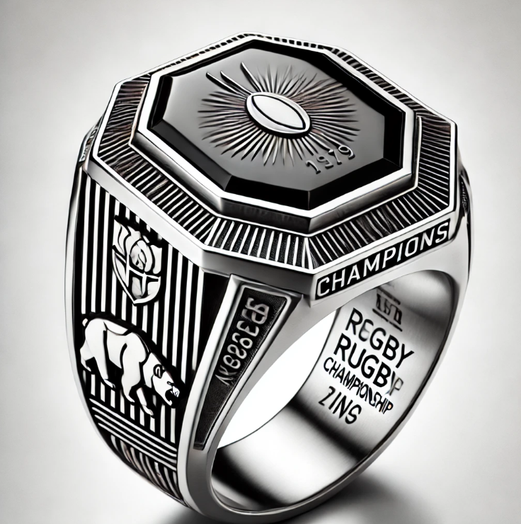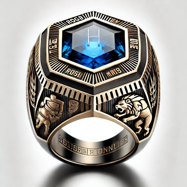 Rhodium Plated Sterling Silver Gold Rugby Trophy Ring with AAAAA Cubic Zirconia