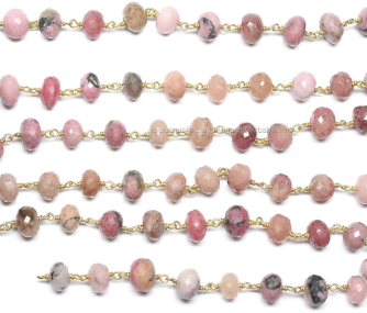 Rhodonite Faceted Rondelle Rosary Chain 925 Sterling Silver 18K Gold Plated Wire Wrapped Gemstone Jewelry Finding