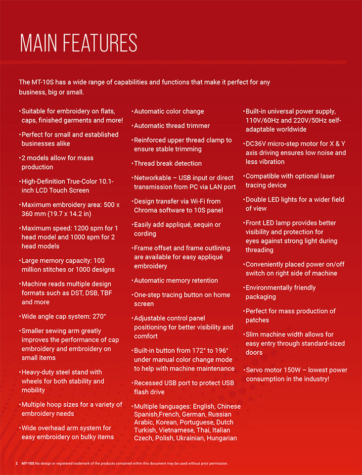 RiCOMA 2 Head Embroidery Machine Computerized with 12/15/20 Needles MT-10S Model Commercial Used for Cap/Flat/T-shirt Embroidery