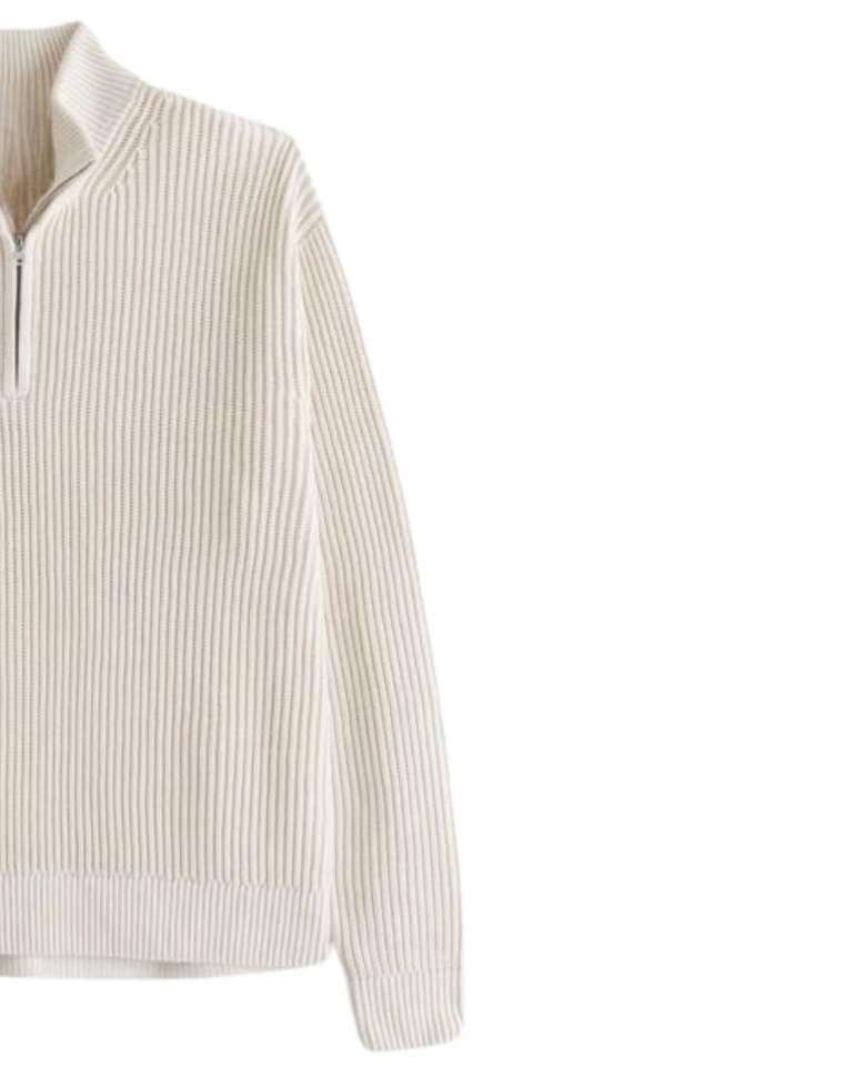 Ribbed Half Zip Knitted Pullover Men Winter Warm Soft Minimalist High Neck Casual Long Sleeve Fashion Sweater Top