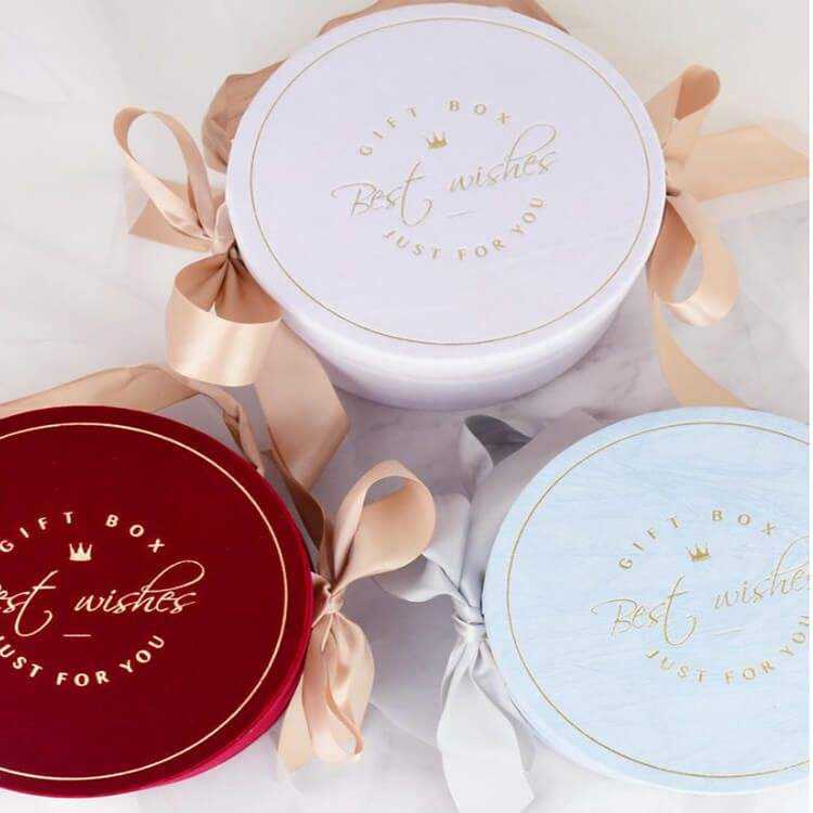 Ribbon Candy Flower Gold Stamping Kraft High End Wedding Handmade Velvet Round Cylinder Gift Box with Cardboard Packaging Box