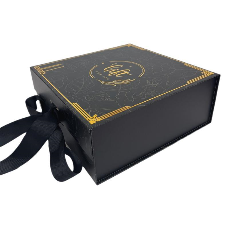Ribbon handle black and white folding box, extra-large full cover folding gift box, for hot-stamping and logo printing