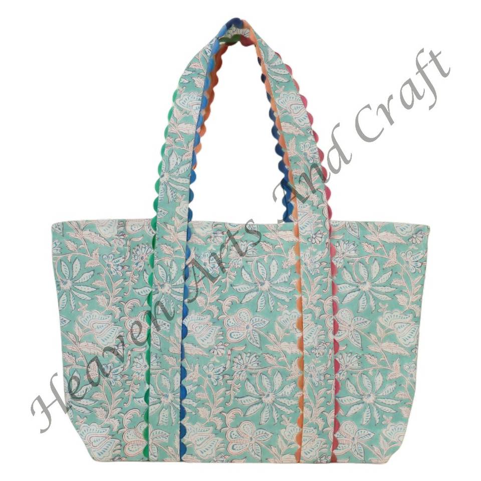 Ric Rac Block Printed Custom Bags With Fabric Handles Reusable Tote Bags For Daily Use Standard Size Bag