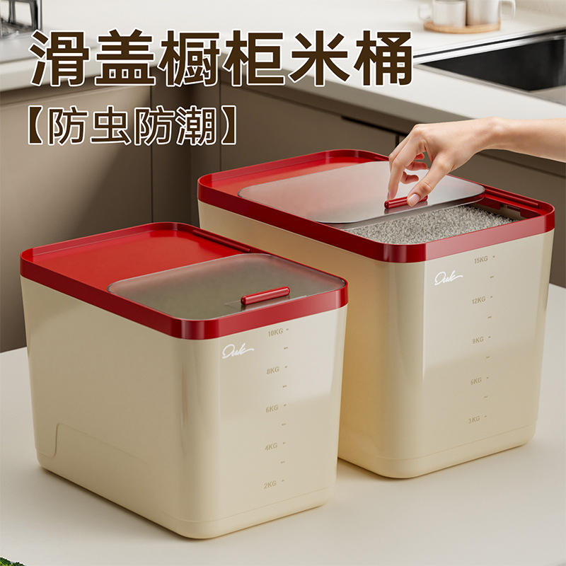 Rice Storage Container Large Capacity Red Lid Plastic Food Grade For Rice And Flour Storage Household Use