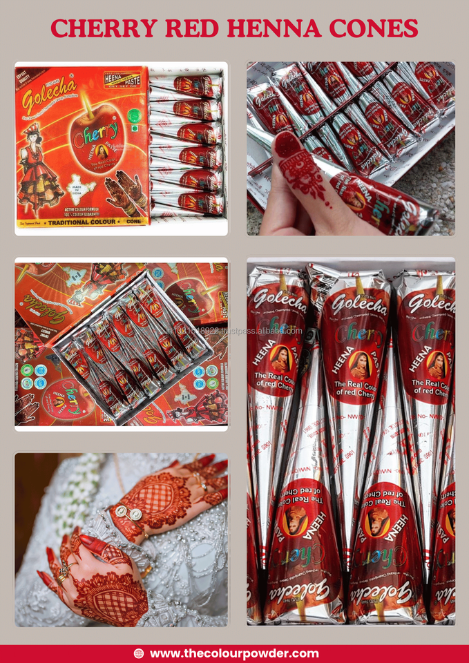 Rich Cherry Colour Henna Cones | Instant Colour Natural Henna | Biodegradable & Skin-Friendly | Temporary Body Art