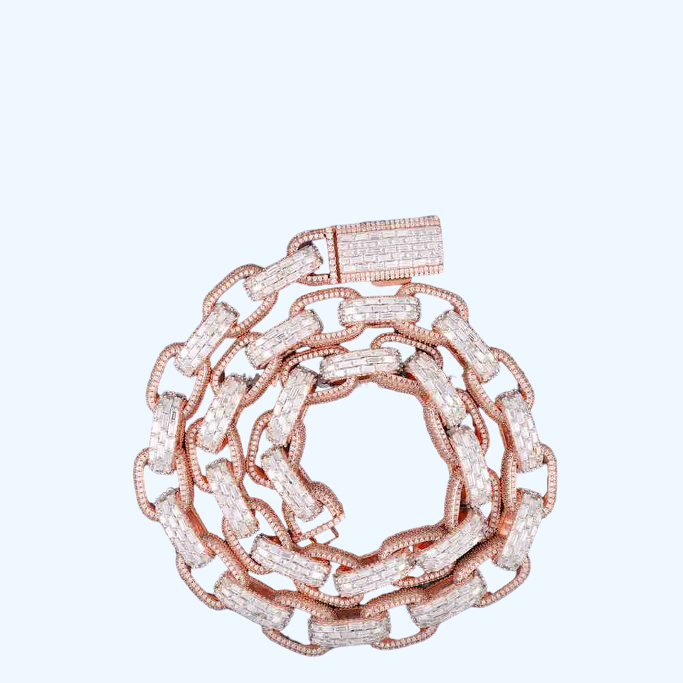 Riche Men Design Type Moissanite Diamond Infinity Link Chain 14Kt Rose Gold and Silver Alloy Chain for Men's