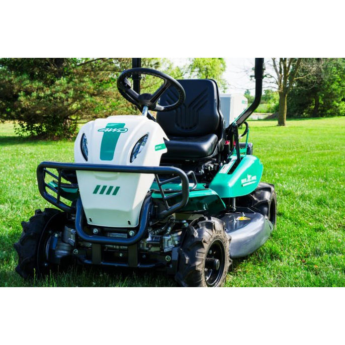Ride-On Brush Cutter with Foot-Operated Height Adjustment, Tight Turning, and Wide Rear Tires for Traction