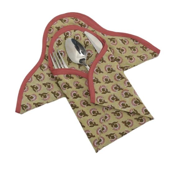 Ridhi Beige Maroon Floral 100% Cotton Hand Block Printed Napkin Soft Reusable Table Linen for Dining or Party Decor
