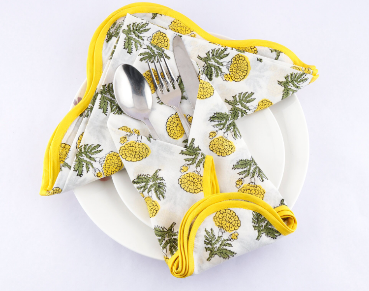 Ridhi's New Arrival 100% Cotton Napkins Simple Plain and Floral Block Print Square Shape Wedding Fabric Napkins From India
