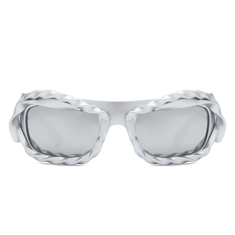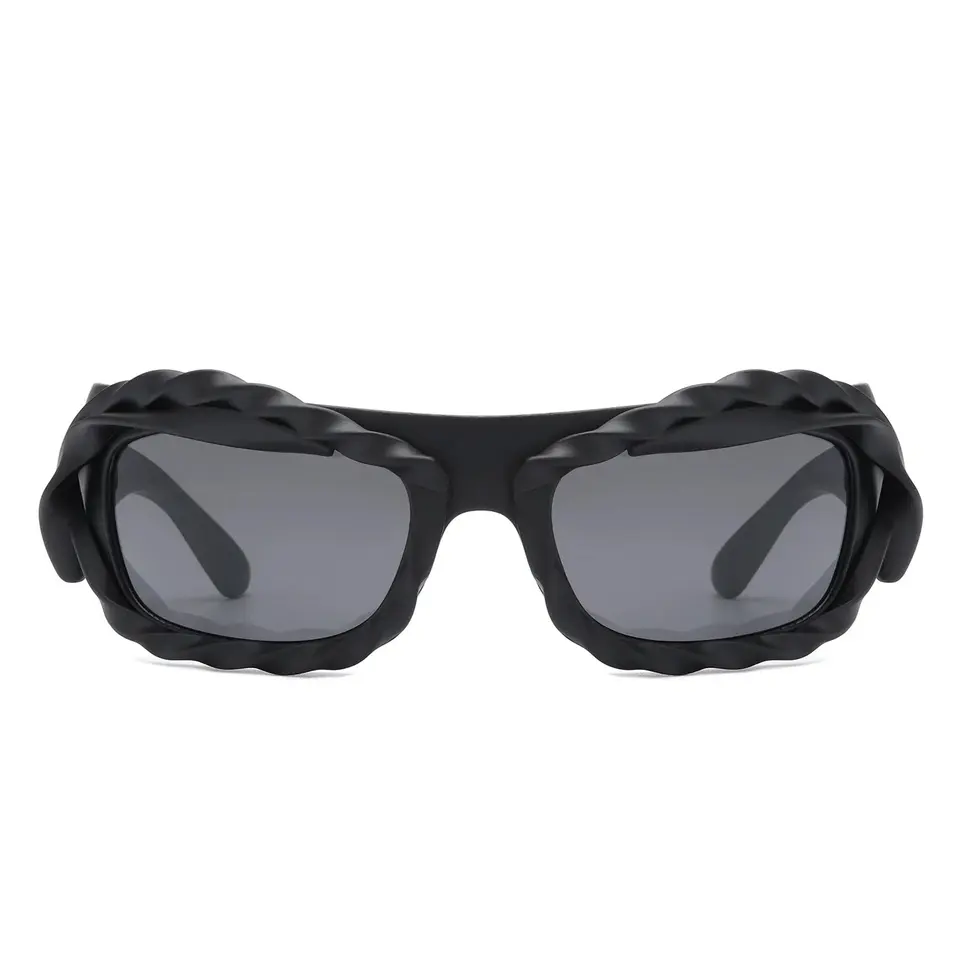 Riff - Rectangle Irregular Twisted Thick Frame Futuristic Sunglasses