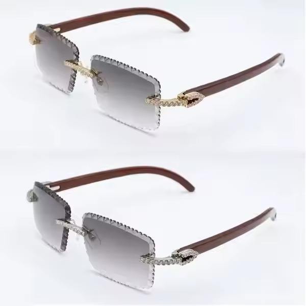 Rimless Sunglasses Black Buffs Bussed Down Hip Hop Glasses for Rappers Luxury Personalized Fashion Moissanite