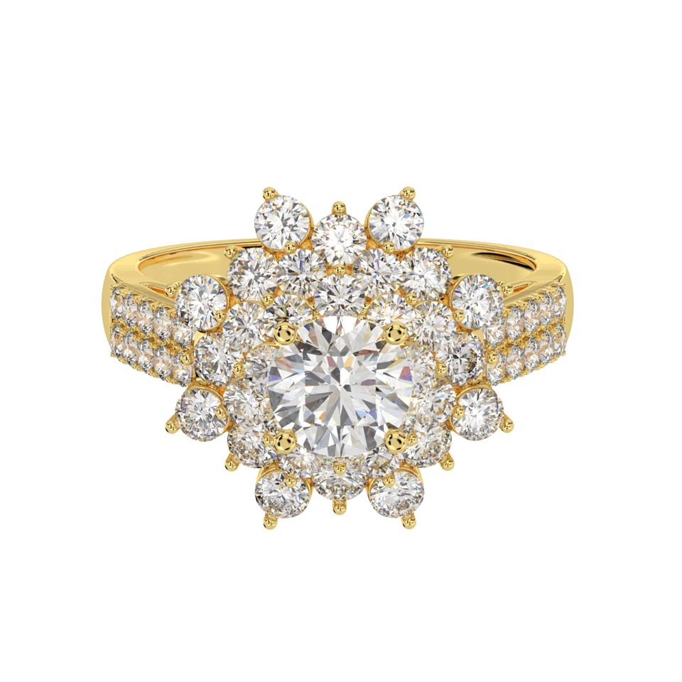 Calista Jewelry's High Quality Yellow Gold Ring Big Flower Shape CZ Diamond Pearl Vietnam Manufacturer's Perfect Party Gift