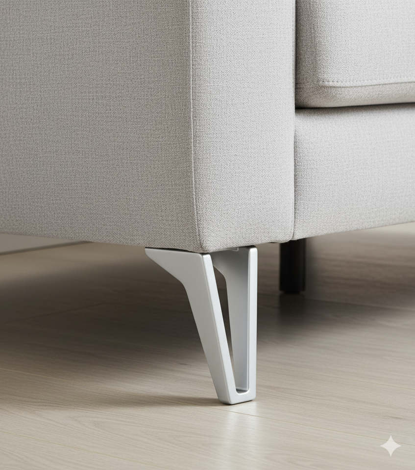 Rio Leg 15cm Silver ABS Plastic Modern T-Shape Furniture Leg Scratch Resistant Finish Sofa Cabinet TV Unit Living Room Workshop