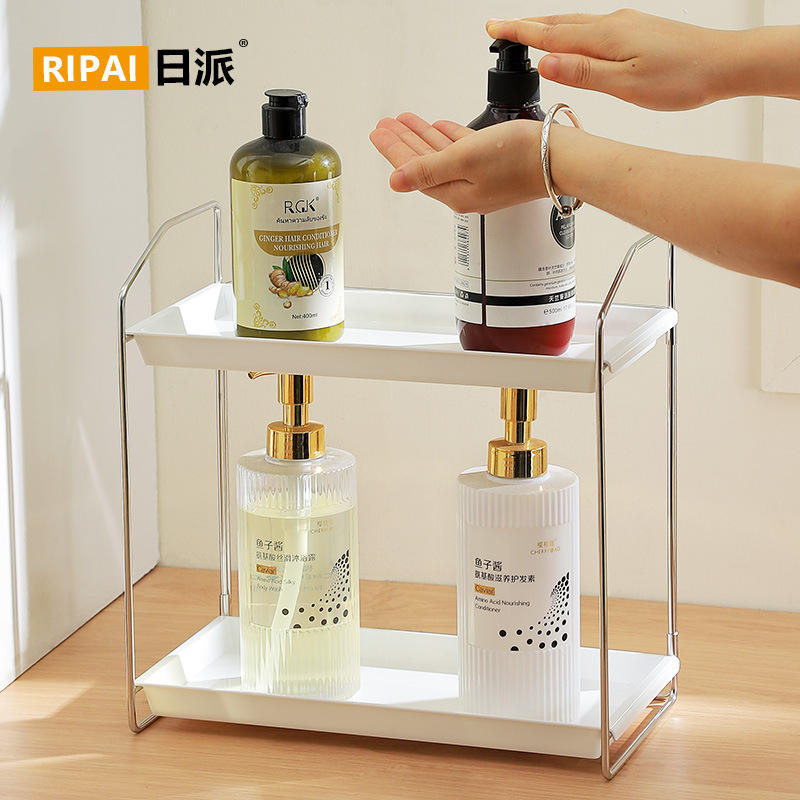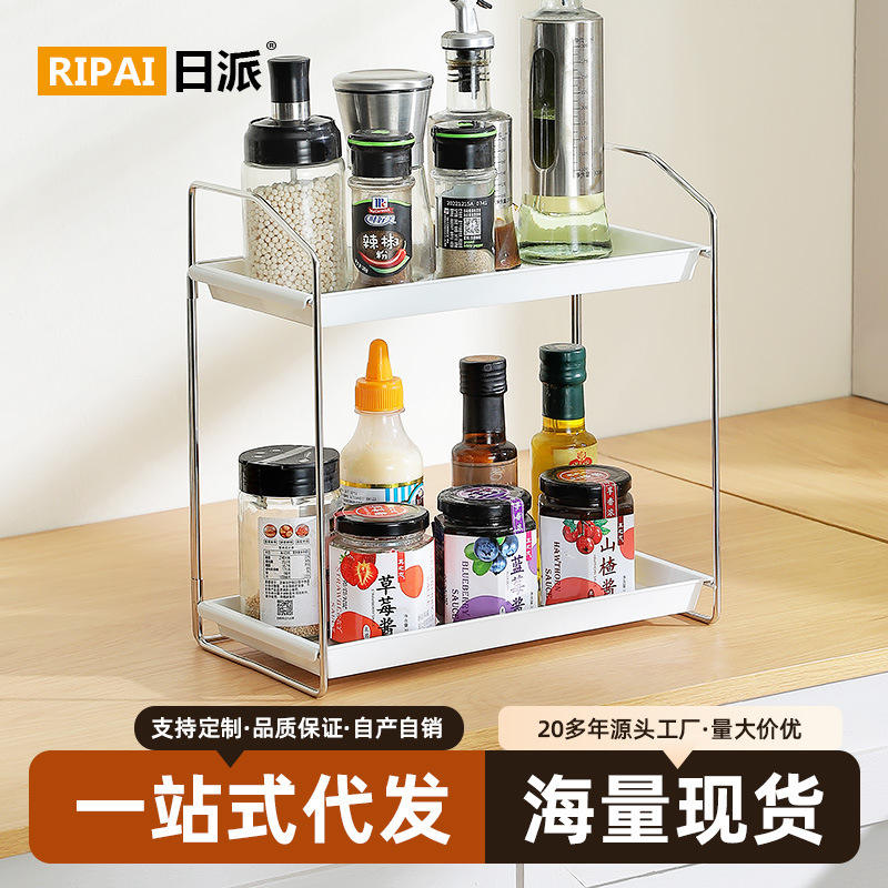 Ripai Double Layer Storage Rack Stainless Steel Kitchen Spice Organizer Multi Functional Countertop Shelf