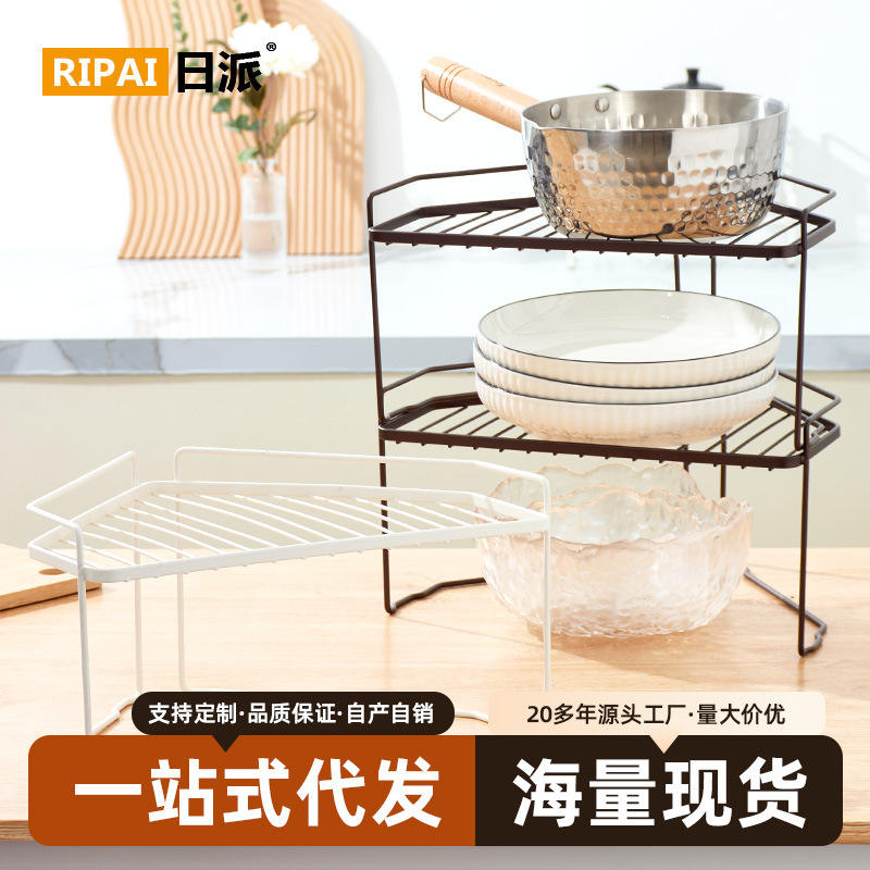 Ripai Kitchen Storage Rack Carbon Steel White Desktop Corner Shelf For Cookware And Condiment Organization