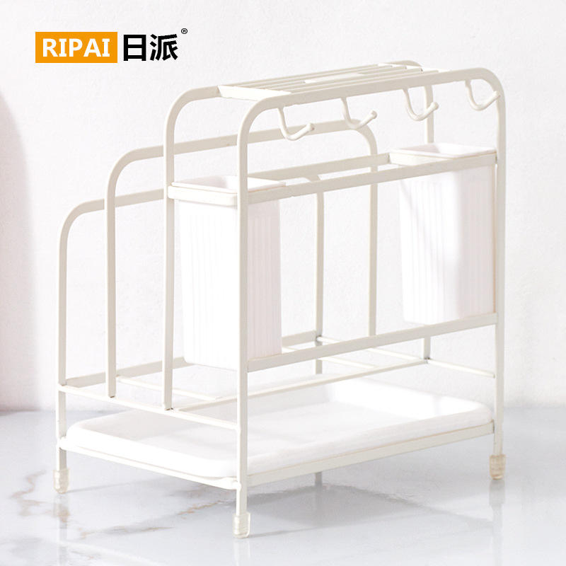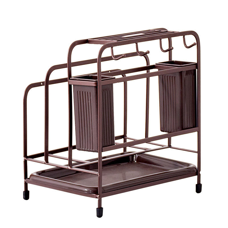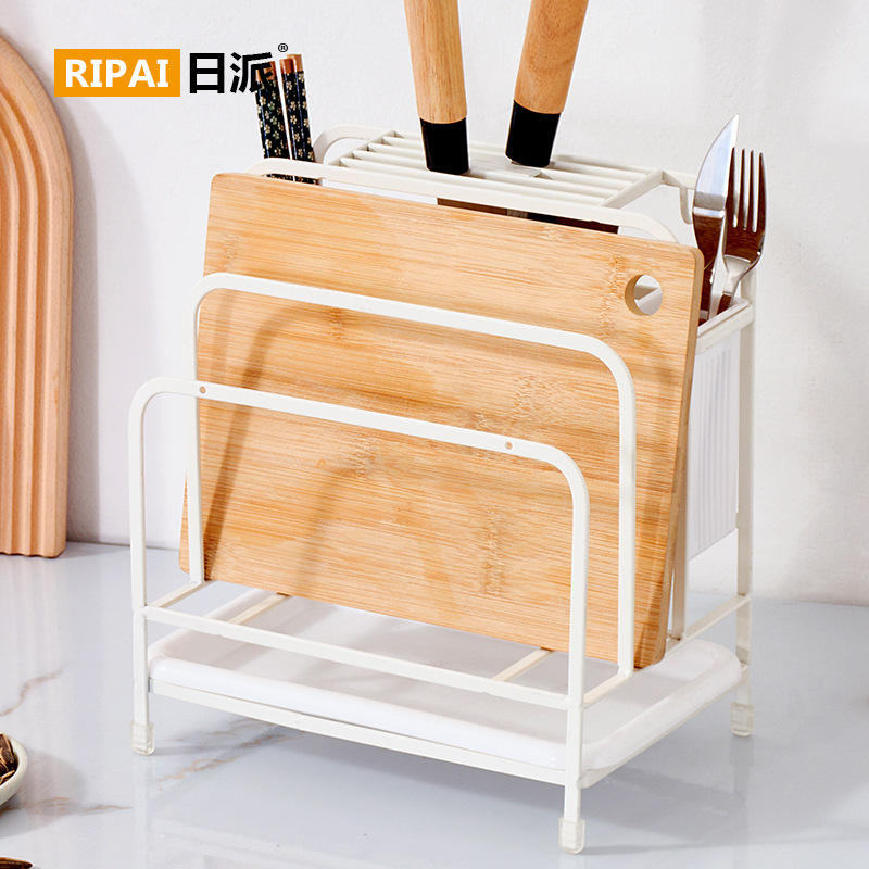 Ripai Kitchen Storage Rack Multi-Function Tableware Organizer With Knife Cutting Board Chopstick Holder White Coffee Color