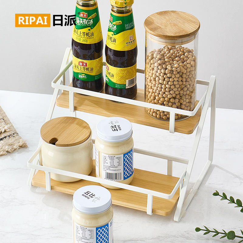 Ripai Kitchen Storage Rack Spice Organizer Wooden Tray Multi Function Desktop Shelf For Condiments And Spices