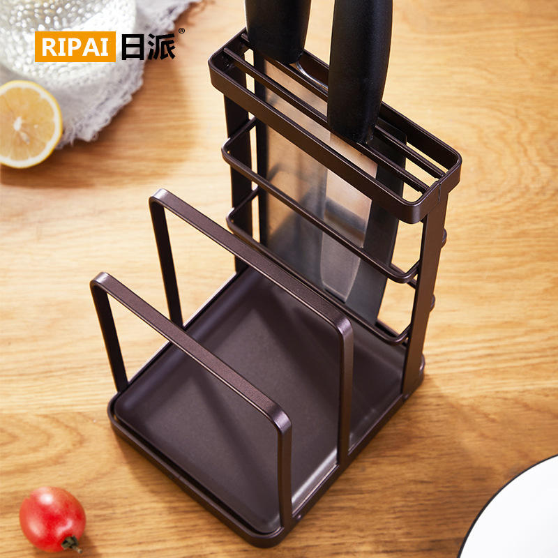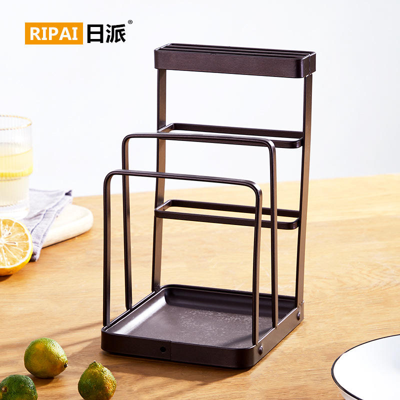 Ripai Knife Rack With Tray Multi-purpose Storage For Knives Cutting Boards Pot Lids Kitchen Organizer Square Design