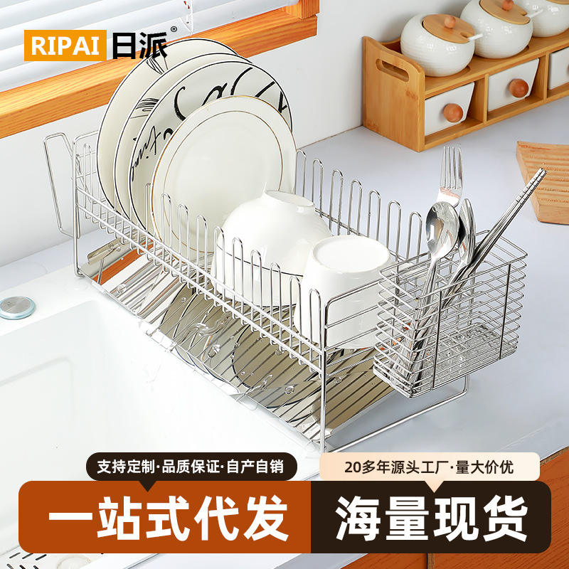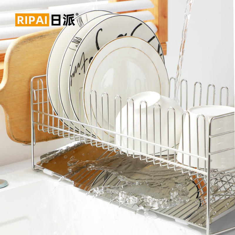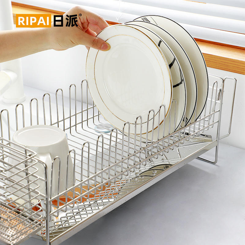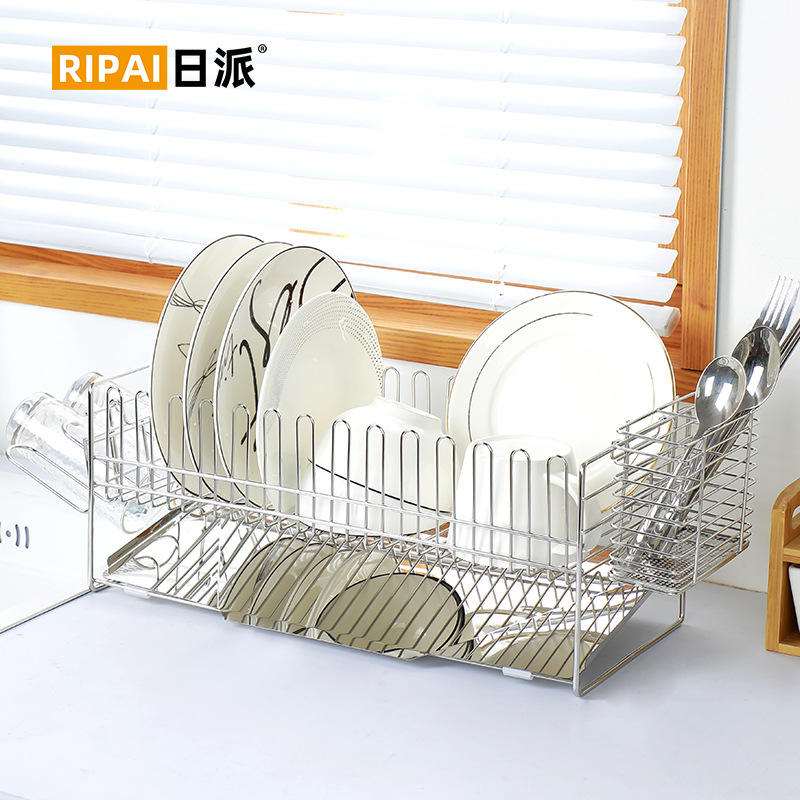 Ripai Stainless Steel Dish Rack With Tray Quick Dry Rectangular Kitchen Draining Rack For Sink Storage