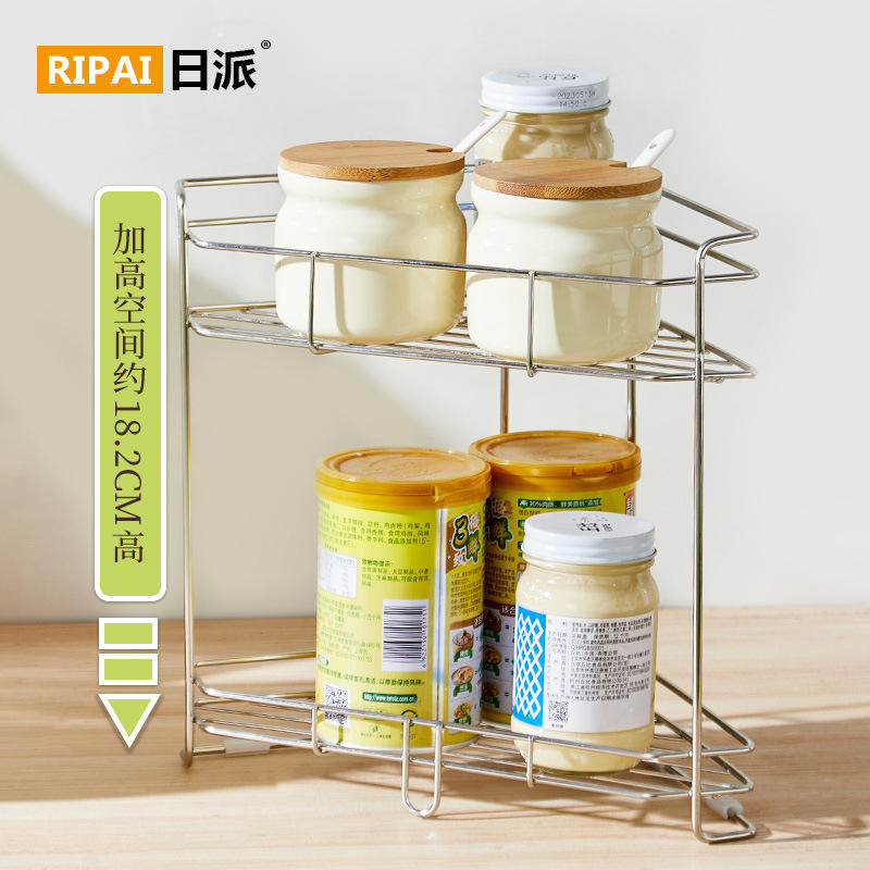 Ripai Stainless Steel Kitchen Spice Rack Double Layer Corner Storage For Seasonings And Toiletries With High Guardrail