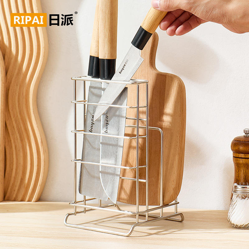 Ripai Stainless Steel Knife Rack With Cutting Board Holder Multi Function Kitchen Storage Organizer For Counter Top Use