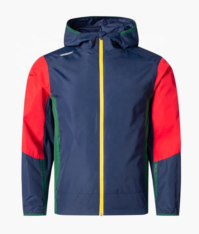 River Camping Fishing Sports Classic Zip Color Block Canvas Stand Collar Windbreaker Jacket Breathable Quick Dry Mesh Lining