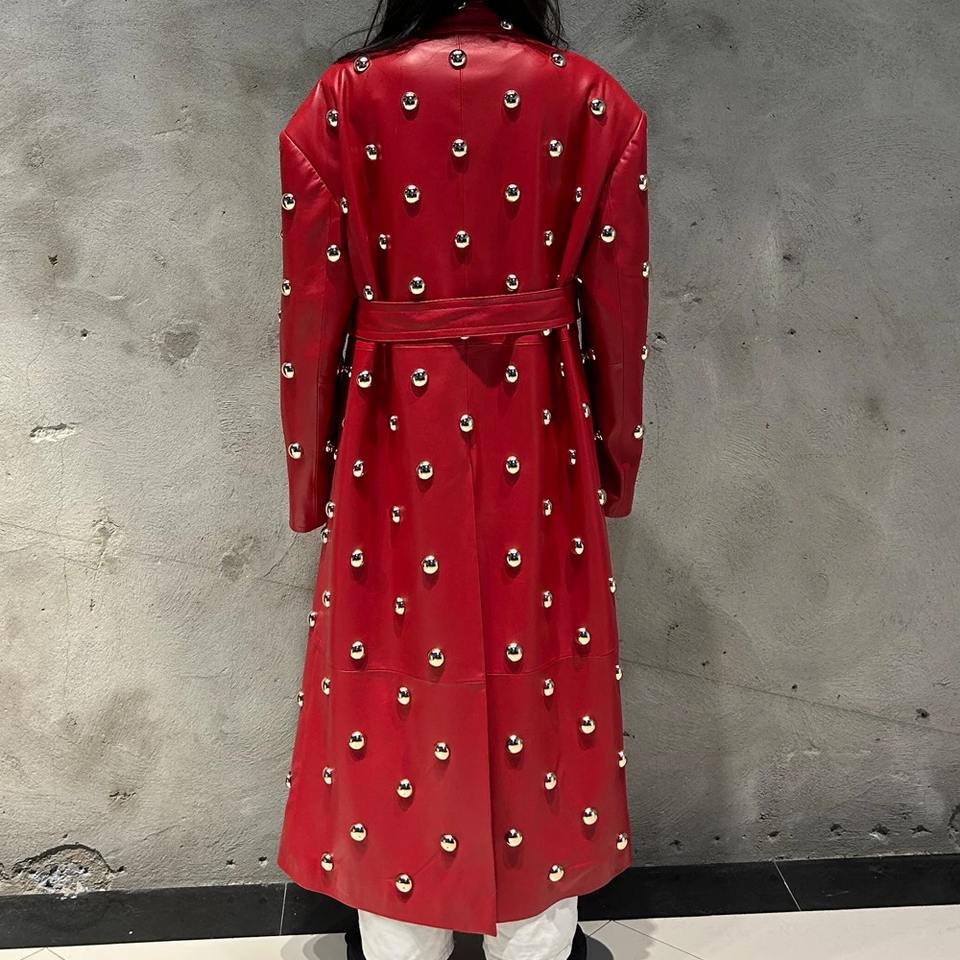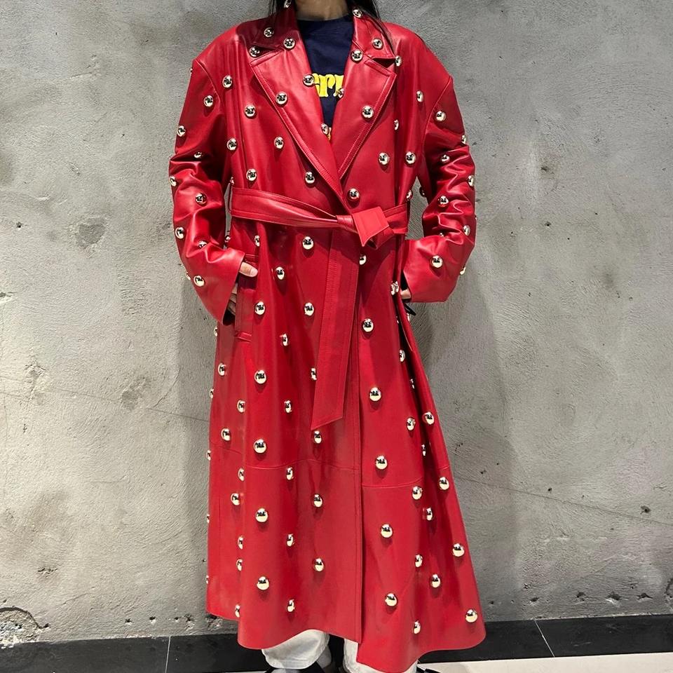 Rivet Long Leather Canvas Waterproof Down Coat Red Fashion Men New Design Autumn Oversized