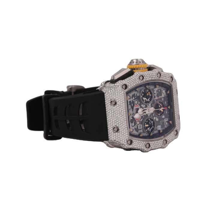 Iced Watch OEM Manufacturer Automatic Luxury Moissanite Business Antique Stainless Steel Skeleton Dial Leather Hip Hop
