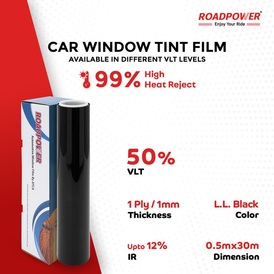 Roadpower SPT Series Black PET Window Film 50CM*30M Durable UV Protection and Privacy Features for Cars