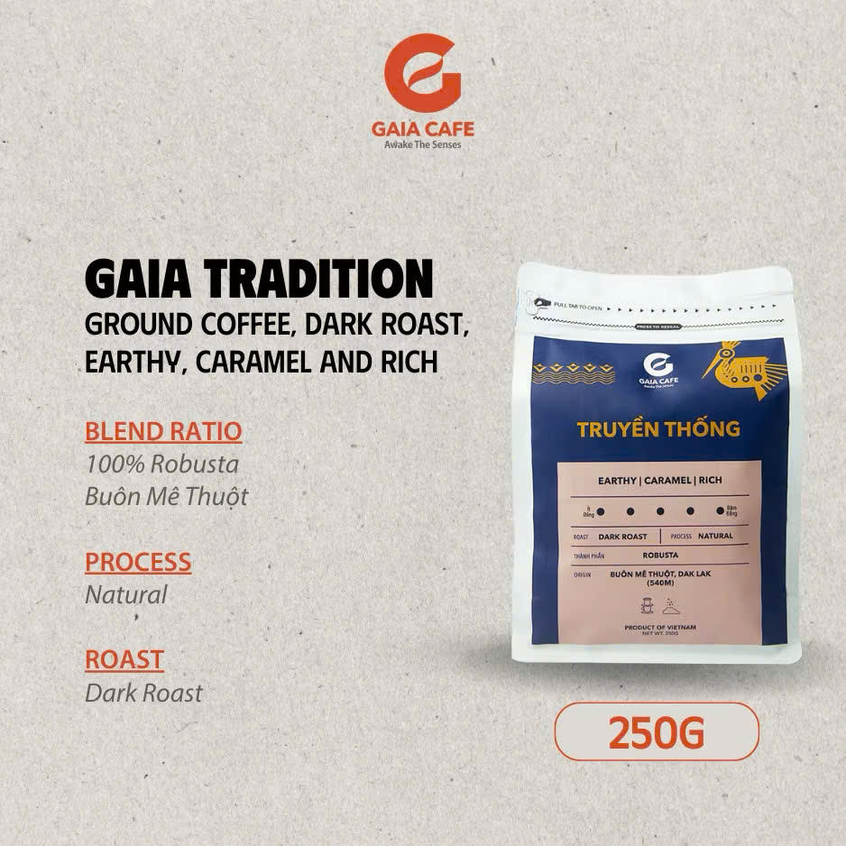 Roasted & Ground Coffee 100% Robusta Natural Process | Vietnam Gaia Tradition 250g Bag OEM/ODM Service