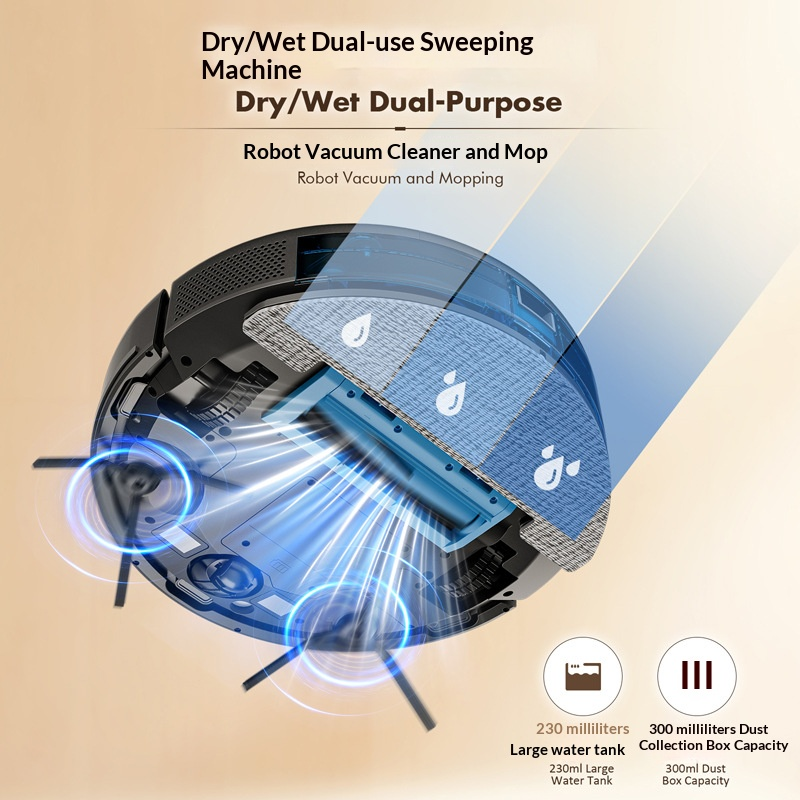Robotic Vacuum Cleaner HEPA Filter Brushless Motor App-Controlled LDS Mapping 3000Pa Suction Sweeping Mopping for Household Use