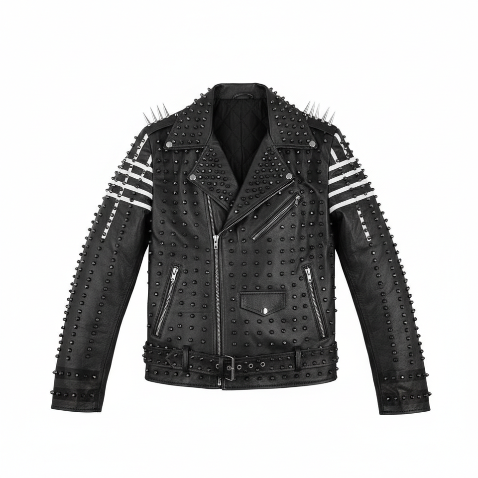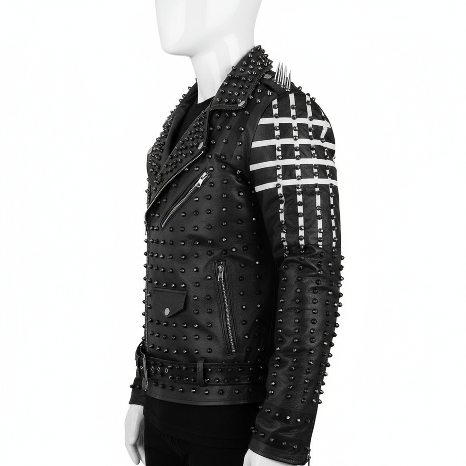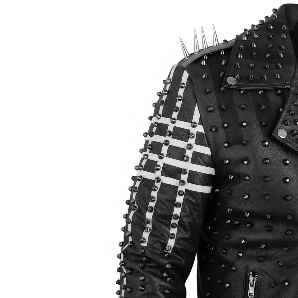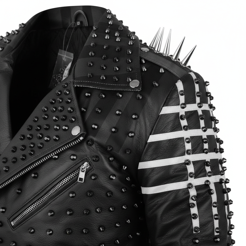 Rock Metal Spiked Jacket Studded Genuine LeaRock Star Style Jacket for Men Jacketsther First Layer