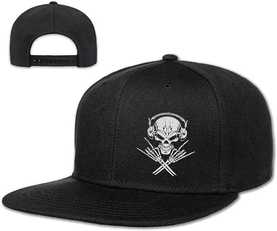 Rock Skull Snapback Hats for Men Women Flat Brim Adjustable Size Baseball Cap Cool Black Hats Outdoor Trucker Hat Dad Caps