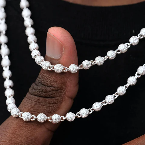 Rock Style Hip Hop Diamond Ball Chain Iced 4mm Beads Chain 925 Sterling Silver Vvs Moissanite Chain