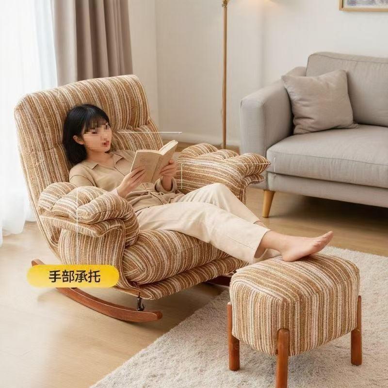 Rocking Chair Living Room Recliner Upholstered Striped Fabric Adult Single Seat Comfortable Leisure Chair