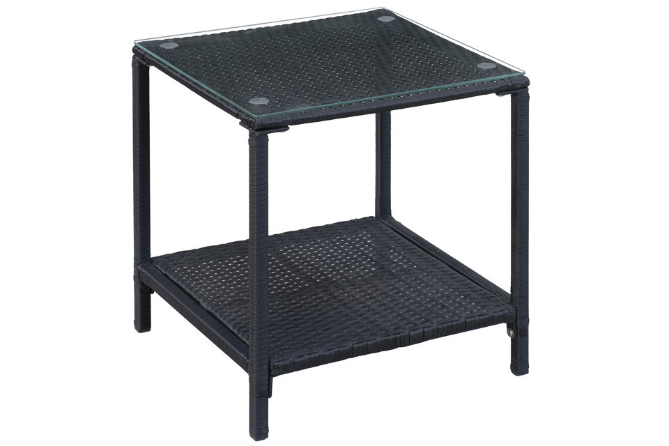 Rattan, steel, tempered glass, polyester cushionmaterial