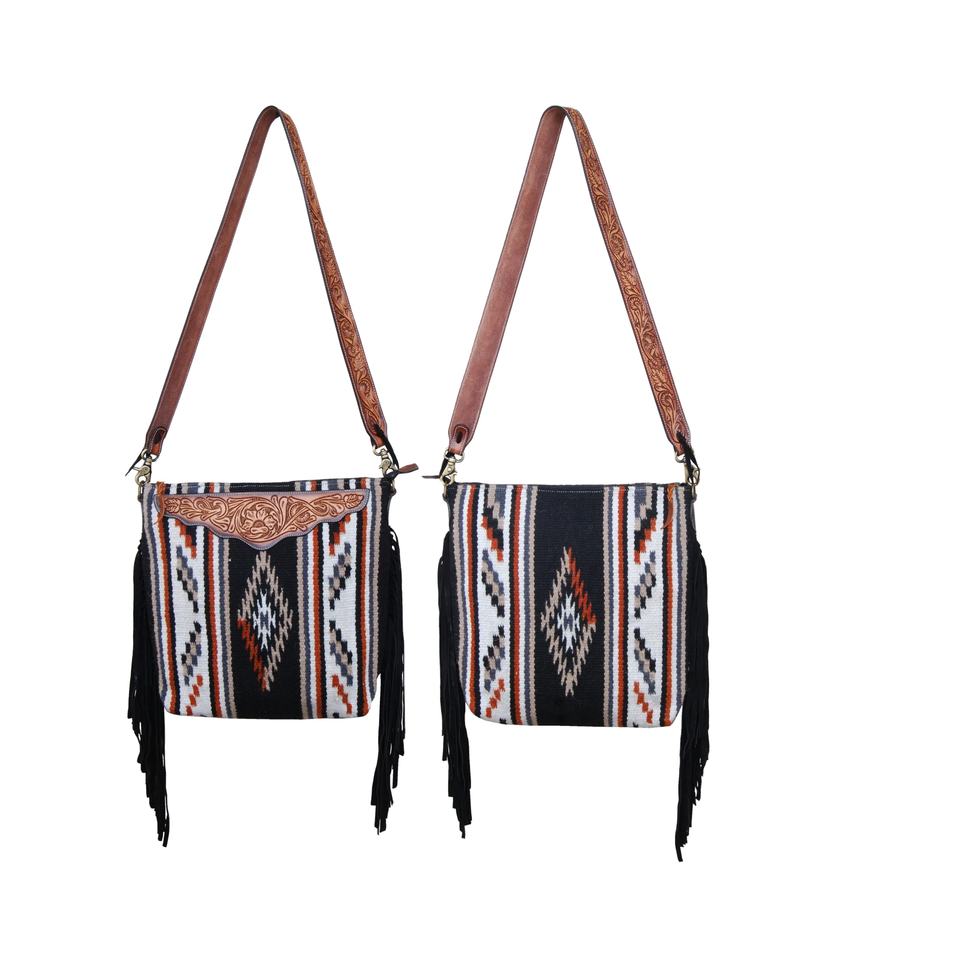 Rodeo International Stylish Western Cowgirl Saddle Blanket Tote Bag With Hand Tooled Strap Heavy Canvas Crossbody Bag