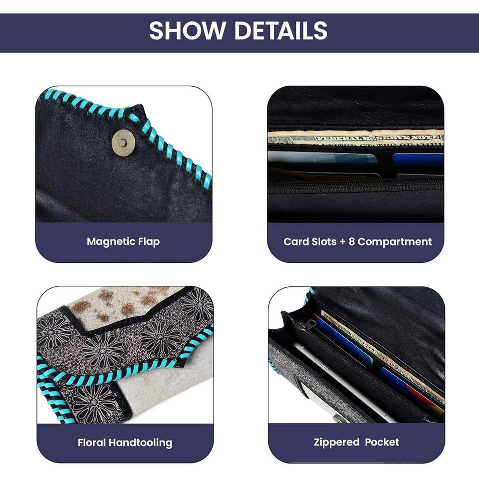 Material:tooled leather+ cowhide hairon + full grain leather