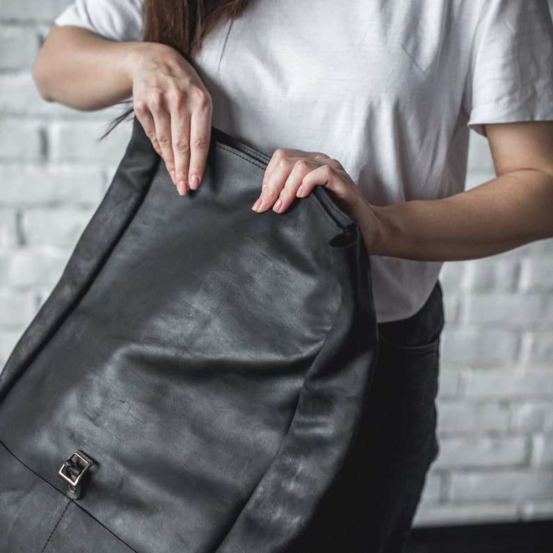 Product name:Leather Roll Top Backpack