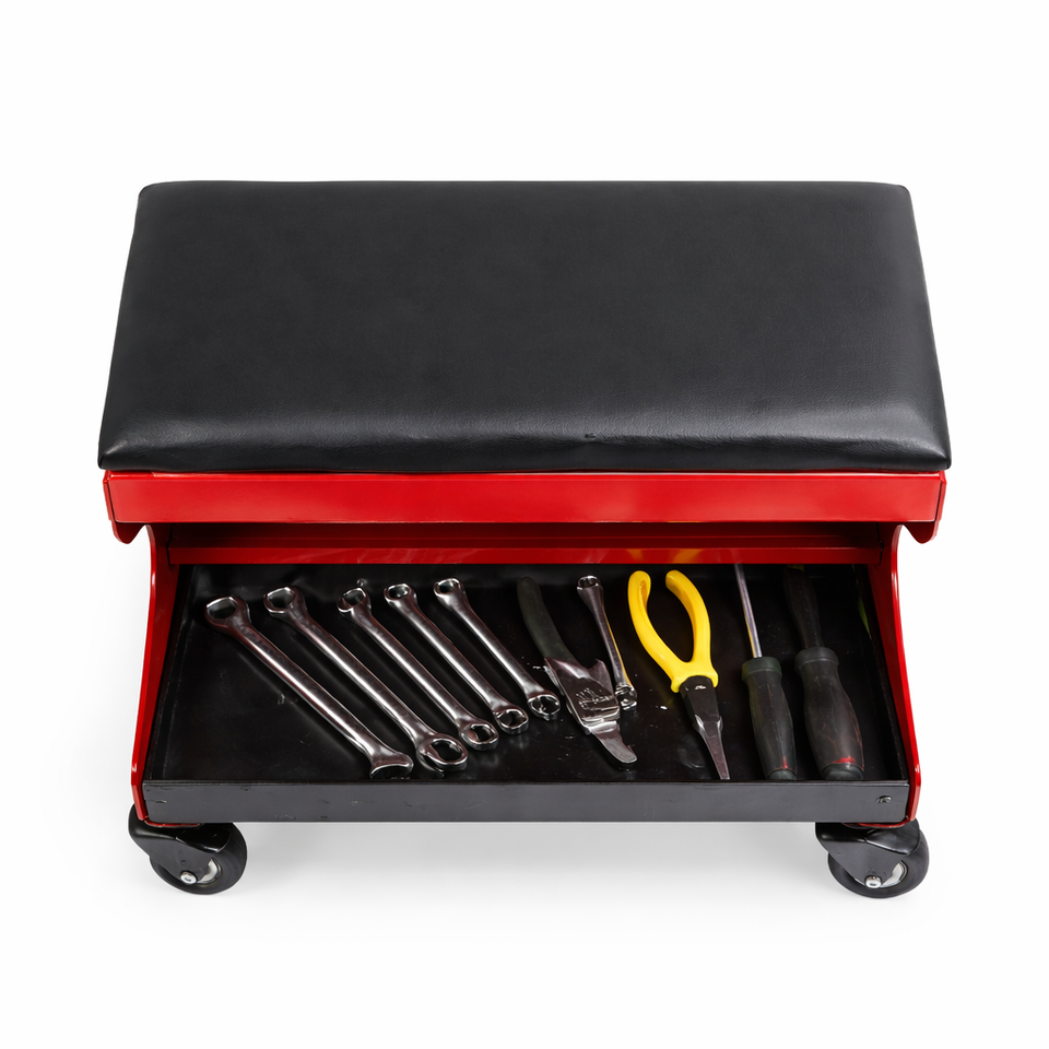 Rolling Creeper Stool with Storage Drawer Padded Seat Heavy Duty Garage Mechanic Seat 4 Swivel Casters GAPGAR021