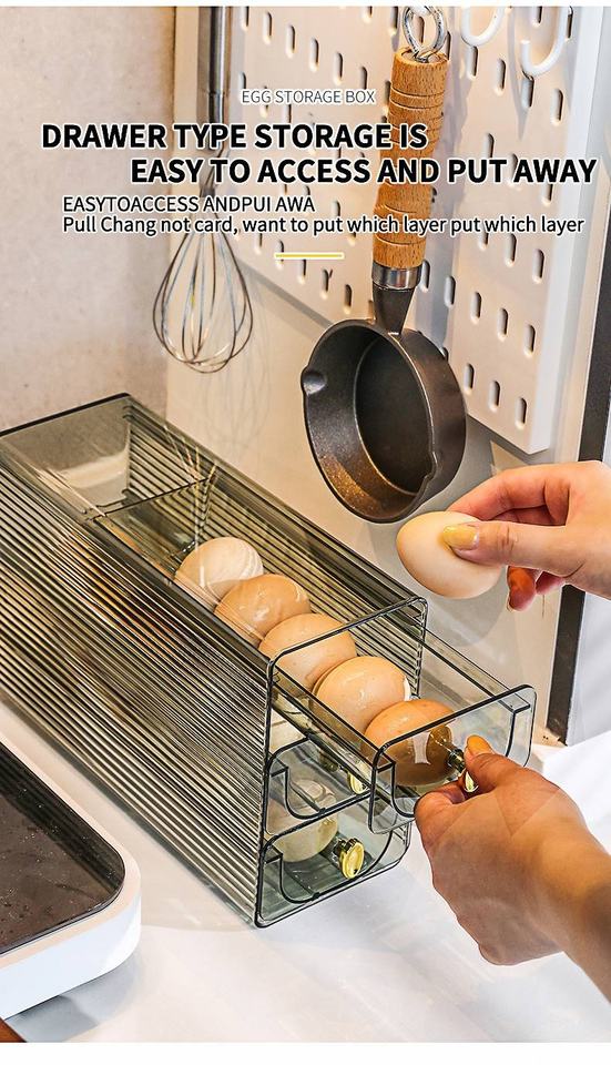 Rolling Egg Dispenser Airtight Plastic Kitchen Fridge Refrigerator Egg Organizer Bins Storage Boxes With Lid