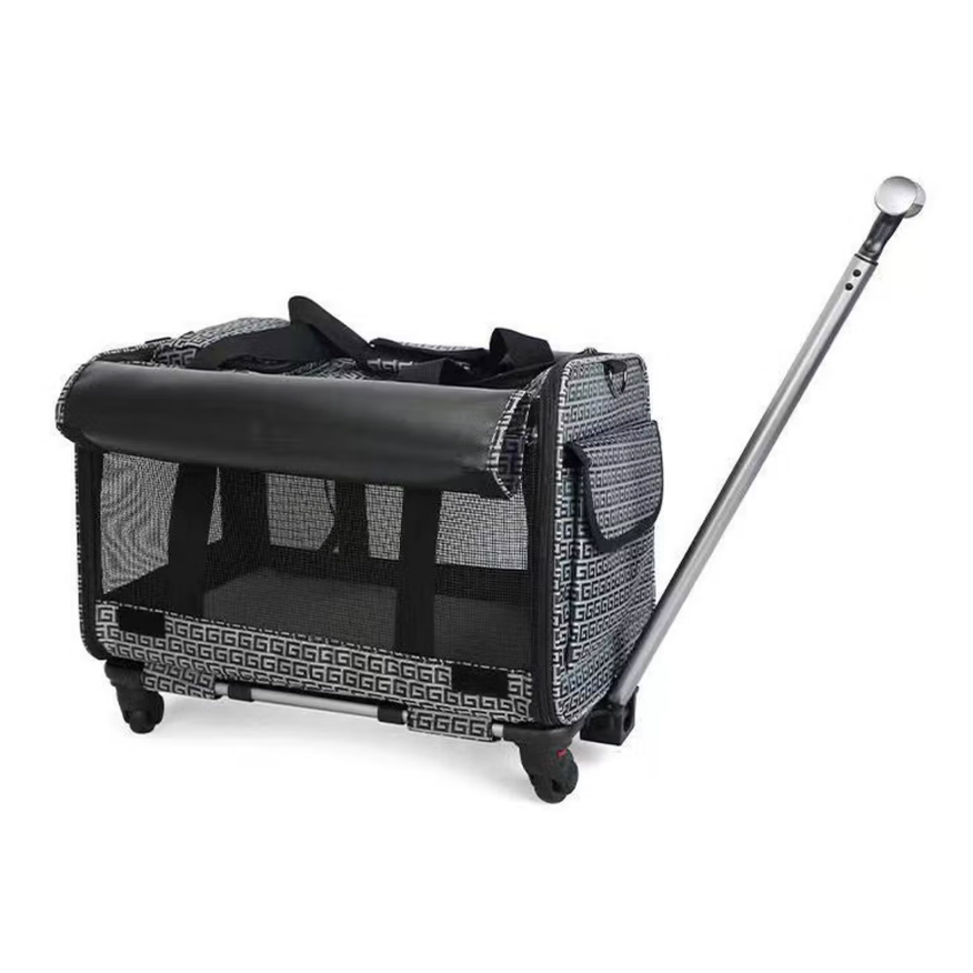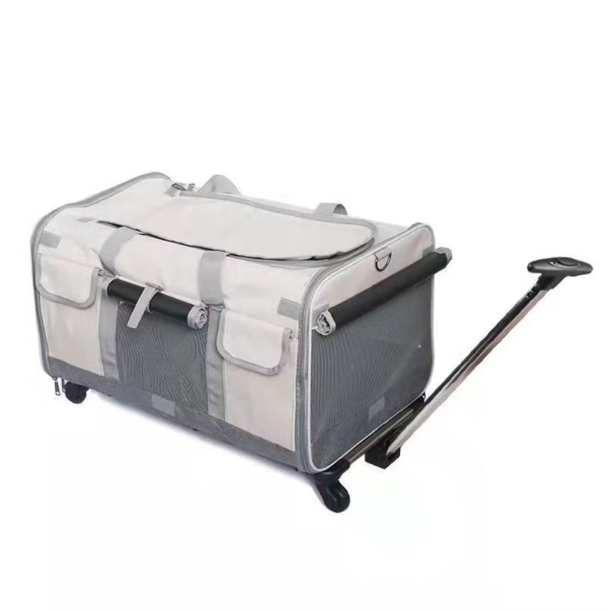 Rolling Pet Carrier with Telescopic Handle Airline Approved Pet Travel Bag with Breathable Mesh Multiple Pockets Durable Wheels