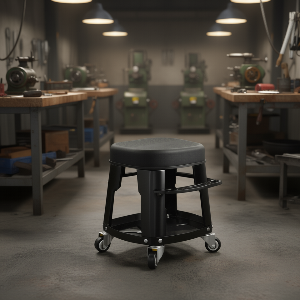 Rolling Workshop Seat Mechanic Stool With Wheels And Tool Tray For Machine Tool Equipment 300 Lbs Load Capacity Hard Seat
