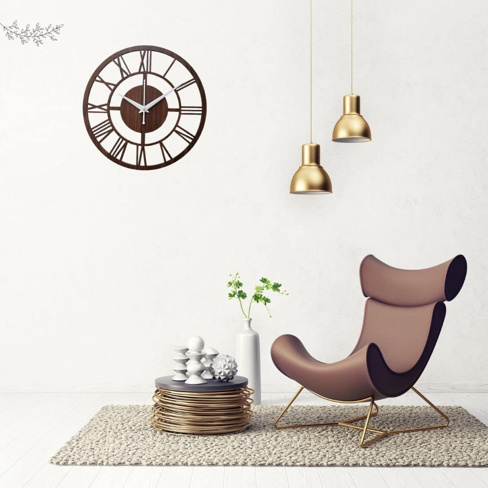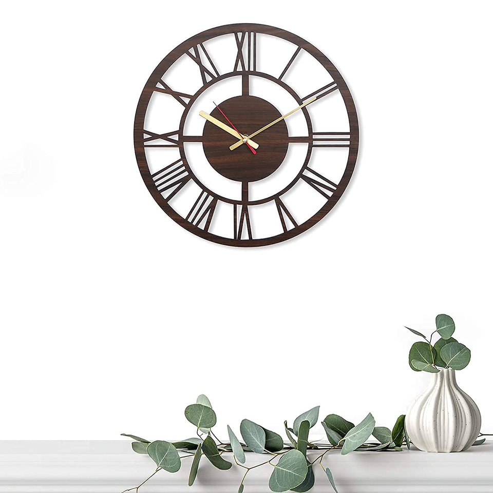 Roman Numeral Wooden Wall Clock Decorative Round Wall Clock with Roman Numbers Modern Style Wall Clock with White Hands