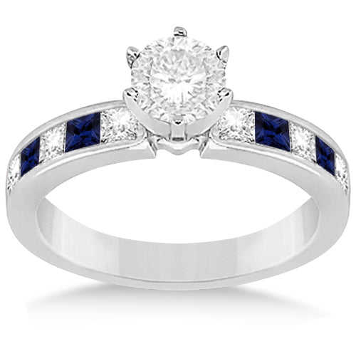 Romantic 18K White Gold Engagement Ring 0.60ct Sapphire Diamond Channel Blue Rhodium Plated Romantic Style Perfect Gift Jewelry
