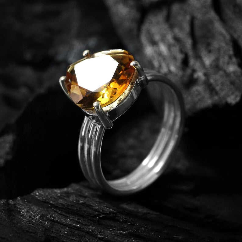 Wholesale Romantic Art Deco 92.5 Silver Ring with Citrine Birthstone Fine Jewelry with Bezel Setting for Weddings