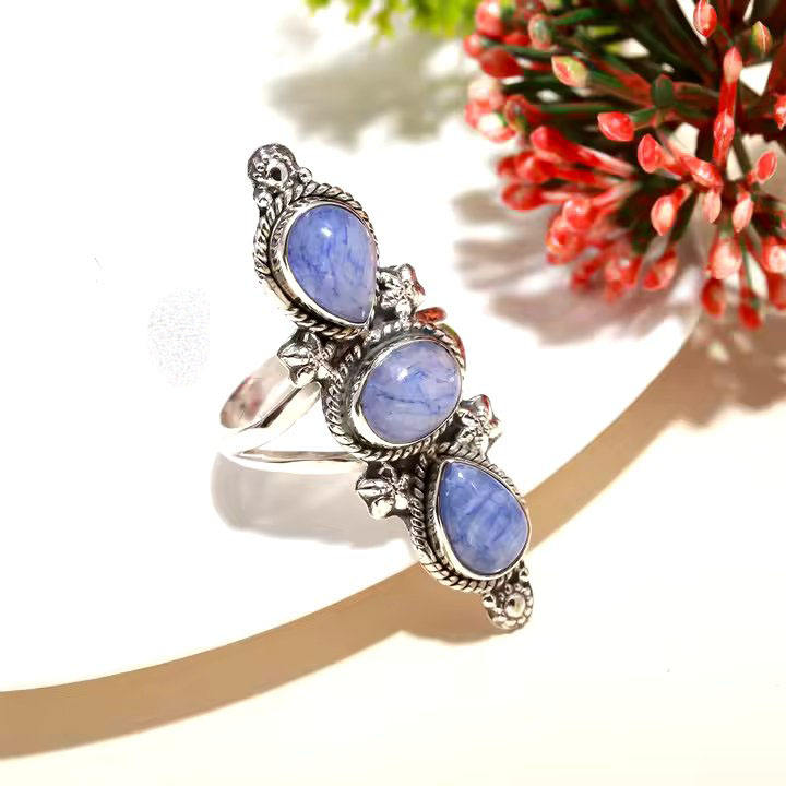 Romantic Design 925 Sterling Silver Women's Wedding Ring Lapis Lazuli Stone Pear & Oval Cut Classic Style for Engagement & Party