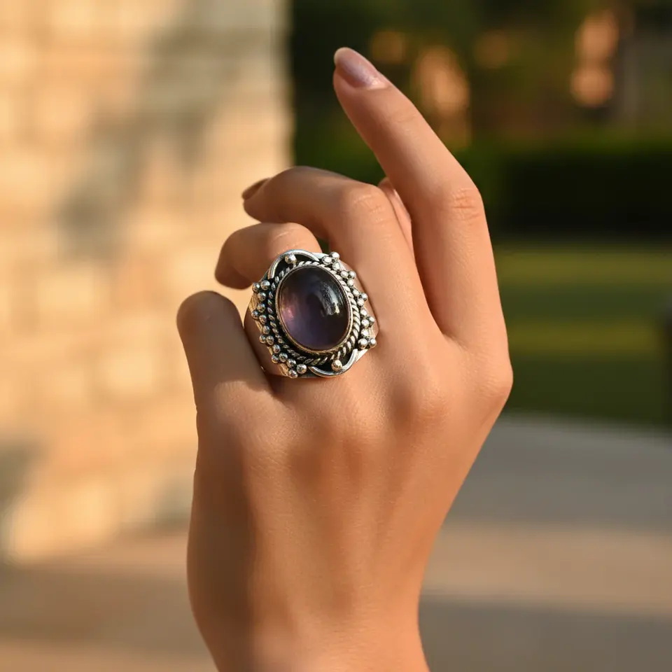 Romantic Korean Style 925 Silver Ring for Women Inlaid Purple Gemstone Fashion Jewelry with Gold Plating Statement Jewelry